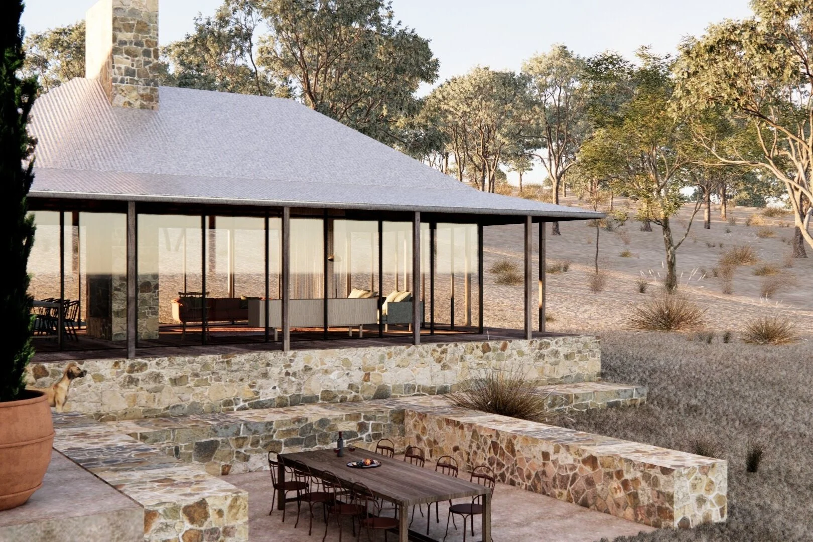 Our practice is placed centrally to these districts and understands the local context. We appreciate the historic value of these regions through vegetation and the built form. We look at individual projects in these unique locations and design with that in mind. Appropriate materials like Yapeen stone quarried in the district and Victorian timbers help buildings to settle well in there surroundings from the day they are built.